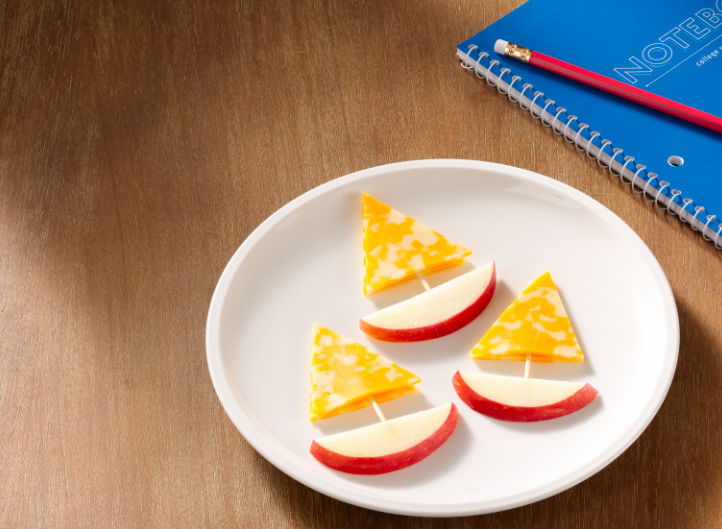 Set sail after school with an apple and cheese sailboat snack. Cut each slice of tasty cheese diagonally to create two triangles. The triangles will become your sails, toothpicks will make the mast and the apple slice is the boat. Attach the cheese slice to the apple with the toothpick and you have a delicious, nutritious apple and cheese sailboat!
